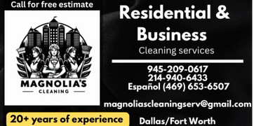 (945) 209-0617 (214) 940-6433 (469) 653-6507 Español magnoliascleaningserv@gmail.com